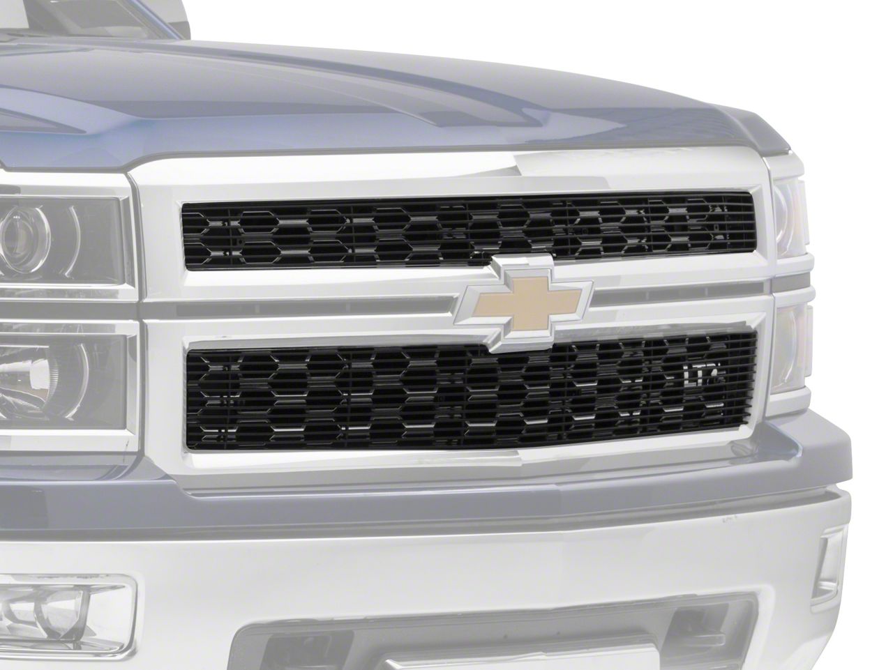 Lookin' Good. When you're ready to add that little extra style to your 2014-2015 Chevy Silverado, then you're going to love the T-REX Billet Series Upper Overlay grilles in black. With lasting construction, this simple to install overlay grille set will add attitude and looks with only a few turns of a screwdriver.