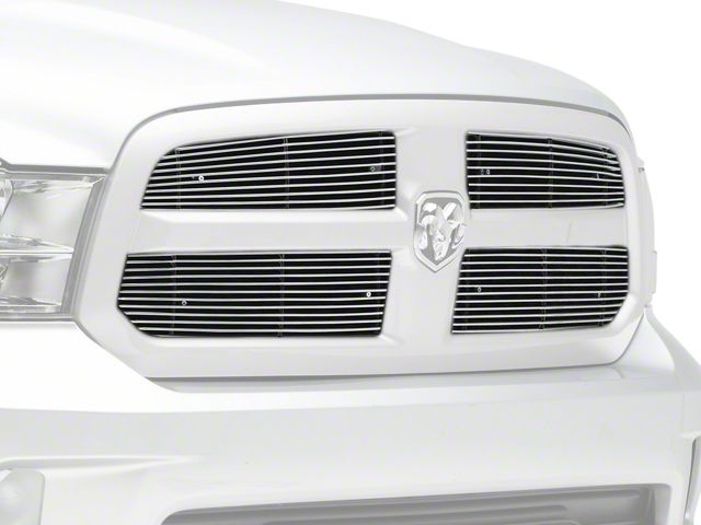 Menacing Style. Let's be real — part of the fun of owning a RAM is the intimidation factor. Well, with the T-REX Billet Series Upper Overlay grilles, you can turn that intimidation factor all the way up to 11. It's made in four separate pieces to fit seamlessly around your stock center bars and RAM emblem, and it's given a powerful polished powder coat finish to give your front end a truly menacing look.