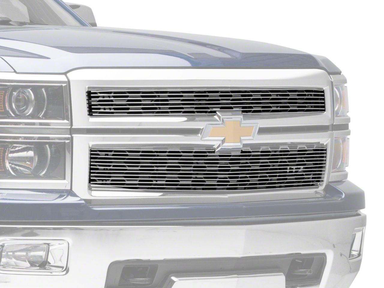 Application. T-REX's Polished Billet Series Upper Overlay grilles are designed to fit all 2014-2015 Chevy Silverado 1500s.