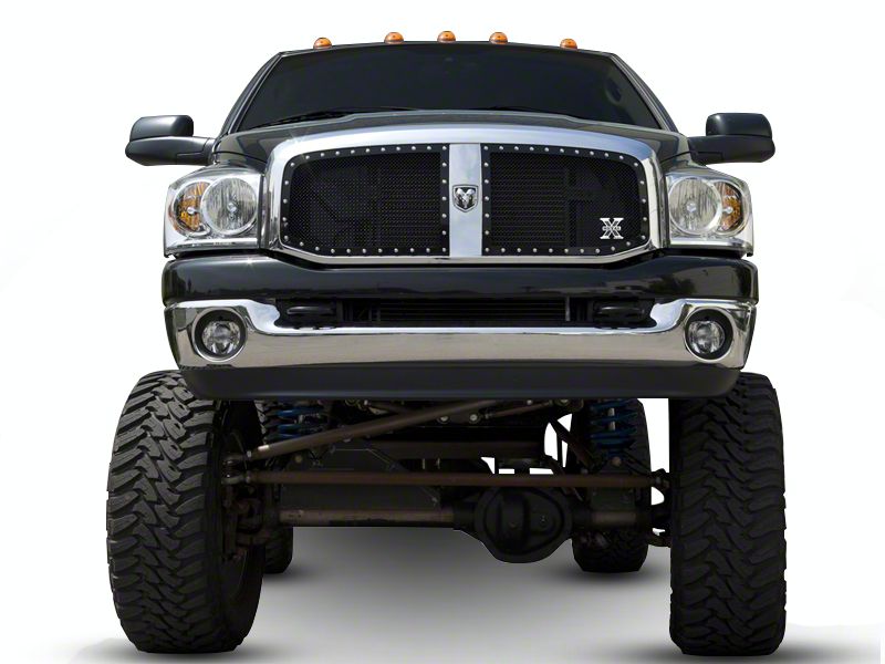 Legendary RAM Styling. While many aftermarket grilles do away with your emblem and all stock styling, the T-REX X-Metal Series Upper grilles Insert lets proud RAM owners upgrade their look without sacrificing legendary RAM styling. It features two studded, mesh grilles in a sinister black powder coat finish — each one goes on either side of the factory chrome center bar for a truly unique, aggressive look.