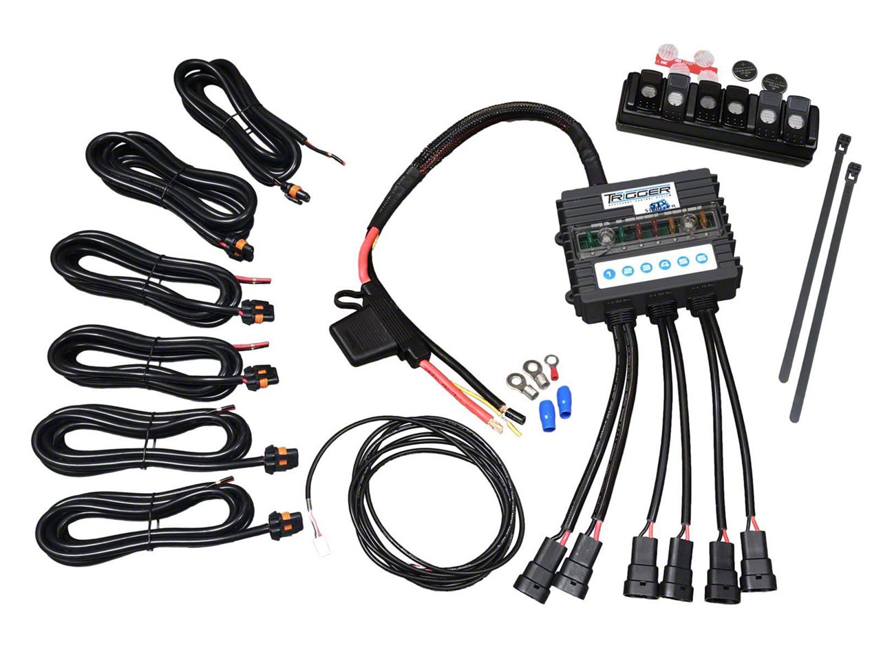 Waterproof and Lighted. Go with maximum reliability knowing that this accessory control system includes a wiring harness and relay, as well as fused circuits for extra protection against power surges. Worry-free during harsh weather conditions with this waterproof and lighted device, complete with six switches fit for universal applications.
