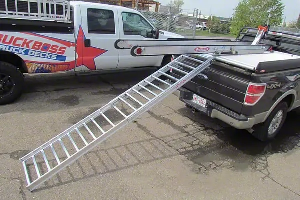 The 10-Foot FlexxRamp Truck Loading solution is lightweight and smooth—perfect for loading FlexxLoaders onto TruckBoss Decks using a winch system. The 10-Foot FlexxRamp Truck Loading ramp is a purpose-built solution for loading motorcycles, personal watercraft, and other vehicles using the TruckBoss FlexxLoader system. With a 20-inch width and smooth aluminum surface, the ramp ensures effortless, controlled loading—especially when paired with a winch system.