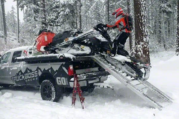 This heavy-duty telescoping snowmobile ramp performs anywhere you need it. It handles both winter and summer machines with ease. For example, you can load snowmobiles one day and dirt bikes the next — all with the same secure, quick-deploy ramp. As a result, it delivers unmatched versatility. This ramp ranks among the most versatile TruckBoss accessories available.
