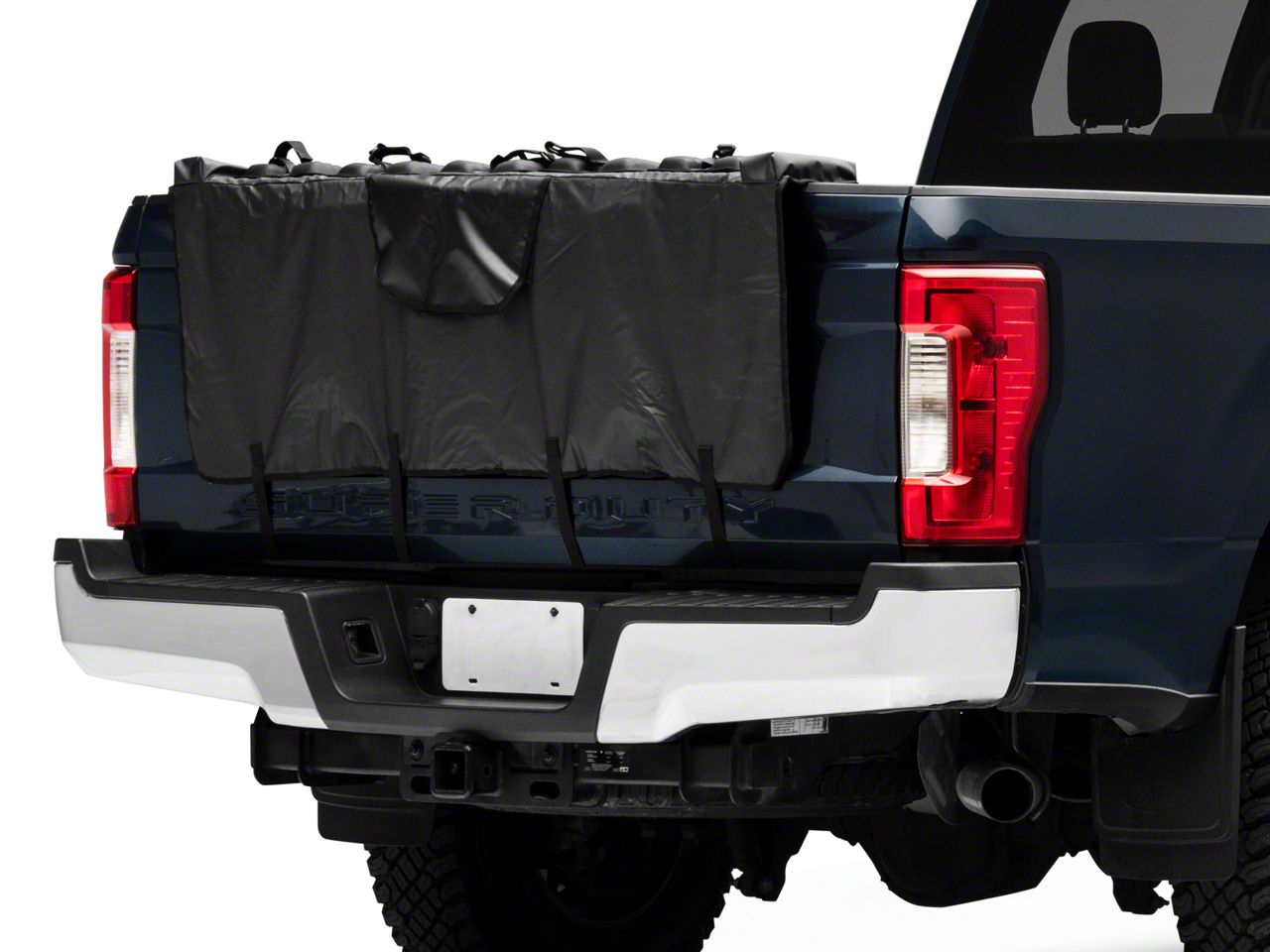 Tailgate Protection. Now you can protect your truck's tailgate from damage when hauling a bicycle on back with a TruShield Tailgate Bike Pad that features Reinforced Mounts. This TruShield Tailgate Bike Pad is made from a durable canvas material with a felt backing to prevent paint scratches. The two storage pockets provide a convenient place to store tools.