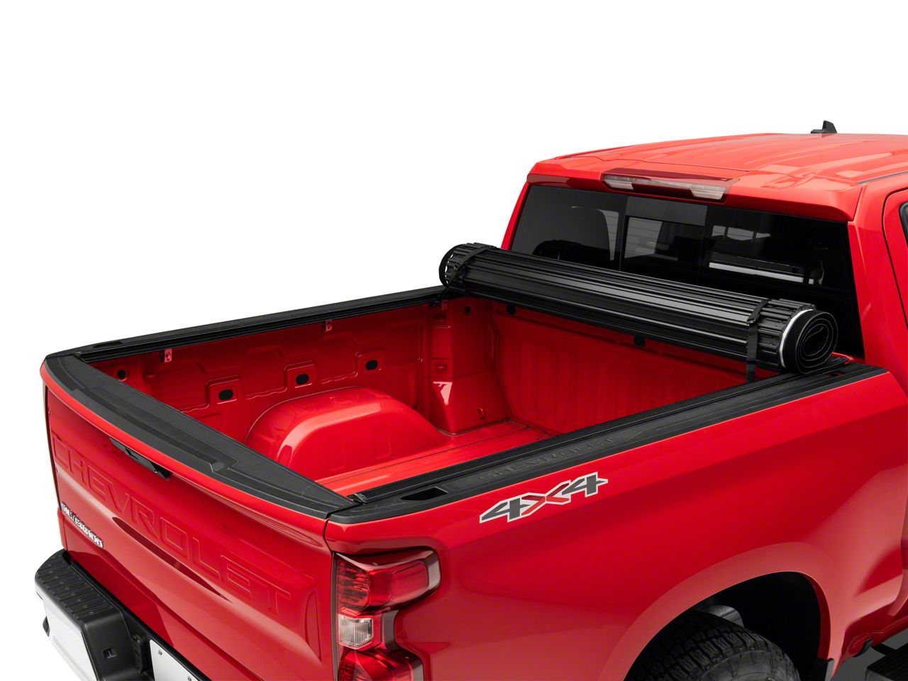 Roll-Up Design. The roll-up design of this Truxedo Sentry Hard Roll-Up Bed Cover provides you with a quick and easy way to access your truck bed. This bed cover uses slam latches that allow you to conveniently open and close the bed cover from either side of your Silverado. This Truxedo Sentry Hard Roll-Up Bed Cover can even be rolled all the way up and it will not hinder your rearview vision or block the third brake light.