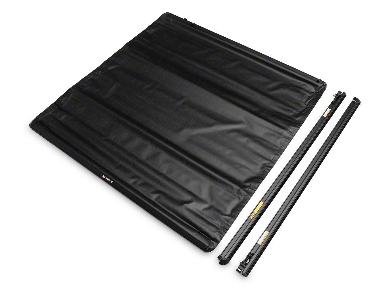 Soft Roll-Up Style With Easy Tension Adjuster. The Truxedo TruXport Soft Roll-Up Tonneau Cover comes with a soft vinyl top that’s reinforced with an aluminum rod at its tailgate end enabling easier roll-up. An easy-to-use tension adjuster on the mounting rails allows you to dial in the right amount of tension needed to maintain a smooth looking top. This cover uses industrial-grade hook and loop strips that run the length of the truck bed rails to provide the top with a fast sealing method. Built-in straps let you secure the top in the rolled-up position when you need to drive with your truck bed open. Lastly, this tonneau cover comes with a dual latch system that secures the cover in the closed position.
