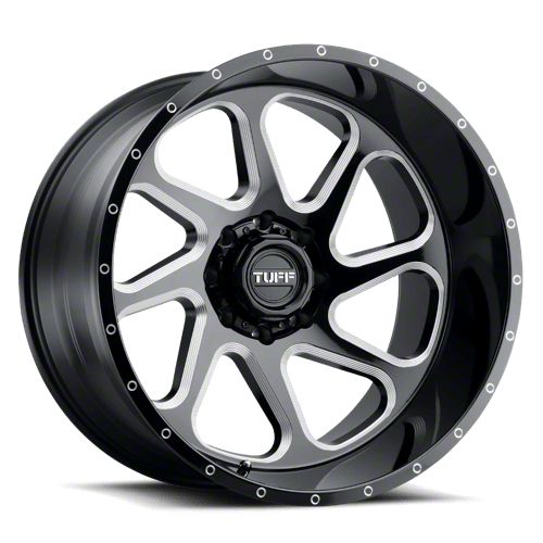 Tuff A.T. T2B Gloss Black with Milled Spokes 8-Lug Wheel; 22x12; -45mm Offset This Tuff A.T. T2B Gloss Black with Milled Spokes 8-Lug Wheel; 22x12; -45mm Offset brings a sleek and modern touch to your vehicle with its striking design. Its refined finish and bold styling make it an excellent choice for those looking to enhance their car’s visual appeal. Whether you're aiming for a sporty look or a more aggressive stance, this wheel stands out as a premium addition. Perfect for drivers who appreciate a stylish upgrade.