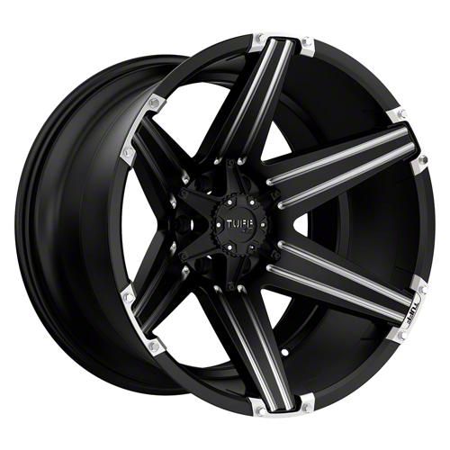 This 20x12 Tuff A.T. T12 Satin Black with Milled Spokes 8-Lug Wheel is completed in a high-quality satin black finish with steel milled spokes that will be the envy of everyone. For added strength and aesthetics, there is a durable clear coat that withstands the rigors of daily driving.