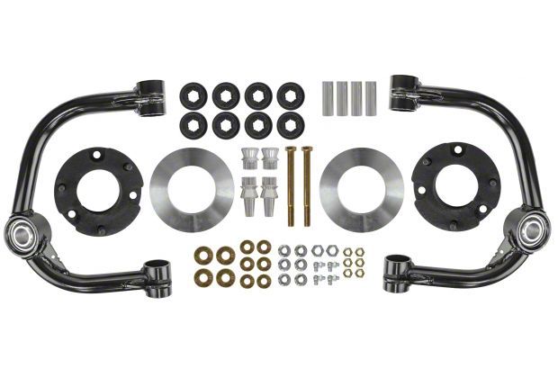 Expounded Turbulence Reduction. If a boost is all you need, the Tuff Country 3-Inch Front Uniball Upper Control Arm Suspension Lift Kit is all you need to fit your Ford’s demands. This suspension assembly also firmly supports the chassis when driving over troublesome terrain.