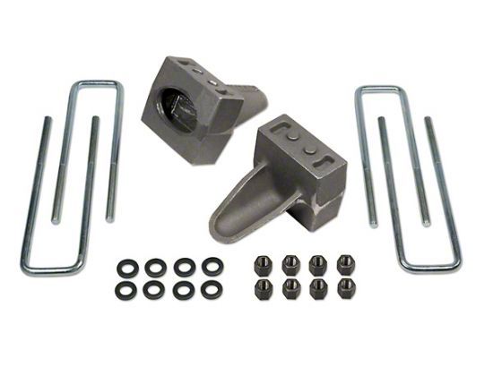Tuff Country # 97073 block kit include lift blocks and ubolts designed to raise the rear of your Ford F150. Installation is done by inserting the cast lift blocks between the factory rear leaf springs and axle. Extended zinc plated rear ubolts designed specifically for the Ford F150 are use to replace the factory ubolts.