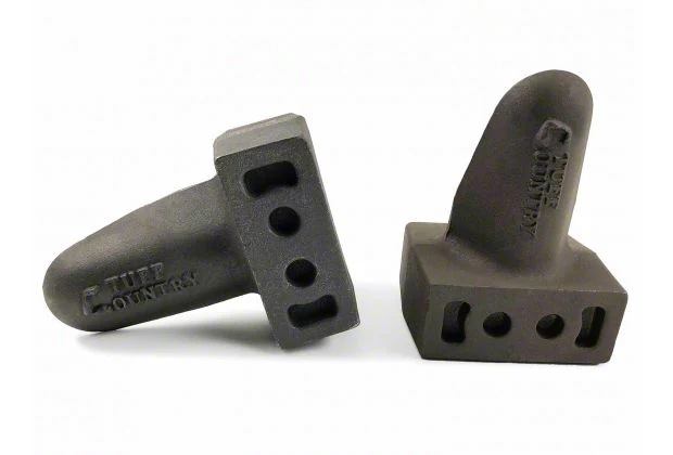 Construction and Appearance. Manufactured from top-notch cast iron quality material, the Tuff Country Rear Lift Blocks are built to withstand rigorous running conditions and various weather environments. They boast a corrosion- and rust-resistant composition, ensuring durability and long-lasting performance. The blocks are overlaid with a natural finish/coating, providing a rugged appearance while protecting against wear and tear. Produced in a state-of-the-art facility and developed with innovative technology, these blocks are rigorously tested to meet or exceed industry-leading quality and safety standards.