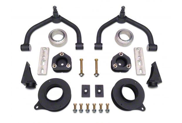 Construction and Appearance. This lift kit features a textured black finish for durability and a sleek appearance. It includes upper control arms, bump stops, and coil spacers, all designed to reduce suspension binding and enhance your vehicle's off-road capabilities. The high-quality construction ensures long-lasting performance and reliability.