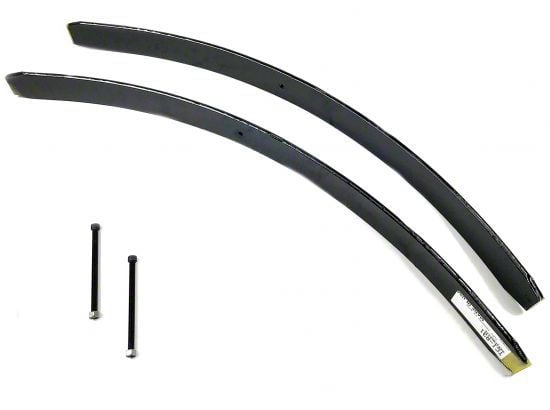 Construction and Appearance. Made from high-quality steel, these add-a-leafs are built for durability and long-lasting performance. They are engineered to work seamlessly with your factory leaf springs, ensuring a proper fit and reliable performance. The included anti-friction pads help ensure a smoother ride, reducing noise and vibration during use.