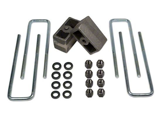 Tuff Country # 97029 block kit include lift blocks and ubolts designed to raise the rear of your Chevy Silverado 1500. Installation is done by inserting the cast lift blocks between the factory rear leaf springs and axle. Extended zinc plated rear ubolts designed specifically for the Chevy Silverado 1500 are use to replace the factory ubolts.