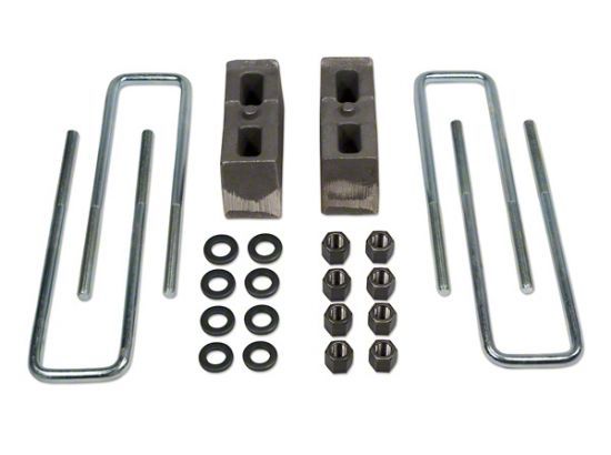Tuff Country # 97023 block kit include lift blocks and ubolts designed to raise the rear of your Chevy Silverado 2500HD. Installation is done by inserting the cast lift blocks between the factory rear leaf springs and axle. Extended zinc plated rear ubolts designed specifically for the Chevy Silverado 2500HD are use to replace the factory ubolts.