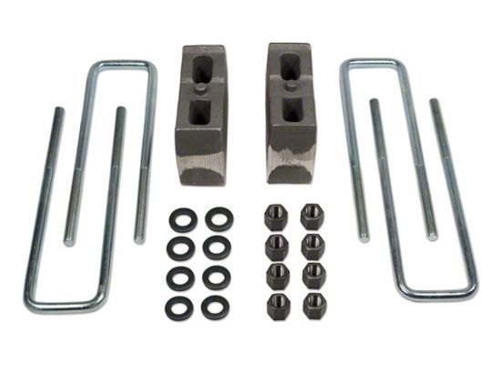 Tuff Country # 97024 block kit include lift blocks and ubolts designed to raise the rear of your Chevy Silverado 2500HD. Installation is done by inserting the cast lift blocks between the factory rear leaf springs and axle. Extended zinc plated rear ubolts designed specifically for the Chevy Silverado 2500HD are use to replace the factory ubolts.