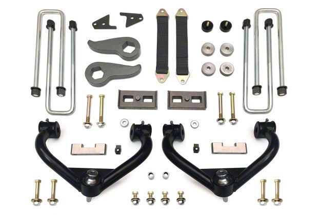 Construction and Appearance. This lift kit features heavy-duty tubular upper control arms to maintain factory geometry and application-specific cast iron lift blocks. The kit includes front shock extenders to ensure the use of your factory shocks. Made in the USA, it is constructed for long-lasting performance.