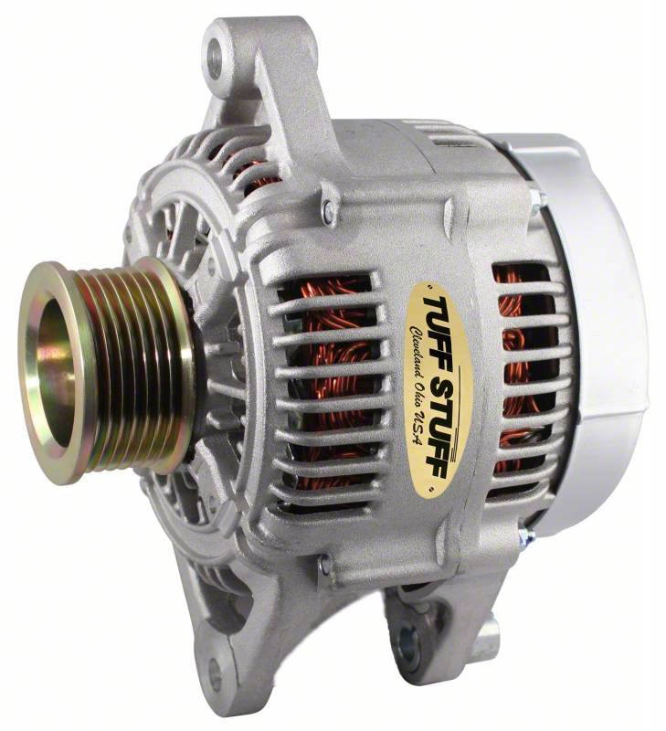 High Performance Alternator. The Tuff Stuff Performance Alternator with 7-Groove Pulley; 90 AMP; Factory Cast is designed to deliver reliable electrical power and efficient charging performance. It ensures stable voltage output and maintains battery charge, critical for vehicle operation, especially at low RPMs.
