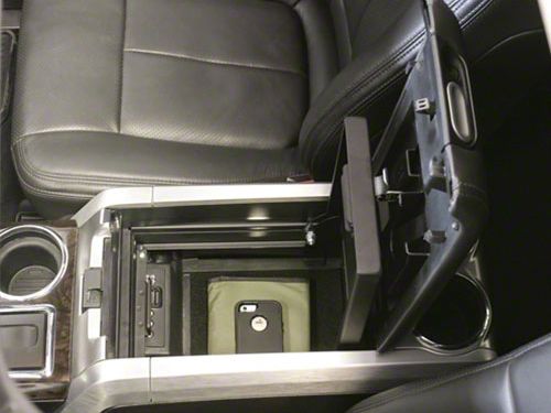 Quality Construction. Made of 16-gauge steel, this console insert brings security to your truck without altering its appearance. The durable texture powder coat finish helps maintain the OEM's already style appearance. The Tuffy Center Console Security Insert secures your belongs with Tuffy's Pry-Guard locking system that has a 10 tumbler double bitted security key. Additionally, this console insert allows you access to the optional OEM USB and power outlets. It will not prohibit your truck from remaining functional with use of the factory accessory tray, armrest and lid.