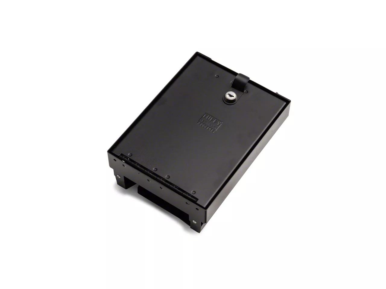 Heavy Duty Construction. Tuffy makes this Console Insert from strong 16 gauge steel and finishes it with a durable textured power coat. The OEM style makes this look like your typical F-150 console yet you know it's really a superior locking system that uses a 10 tumbler double bitted security key. The insert protects your gear using Tuffy's Pry-Guard locking system. You'll still have access to OEM power outlets and USB too, not to mention still being able to use the stock armrest, lid, and accessory tray.