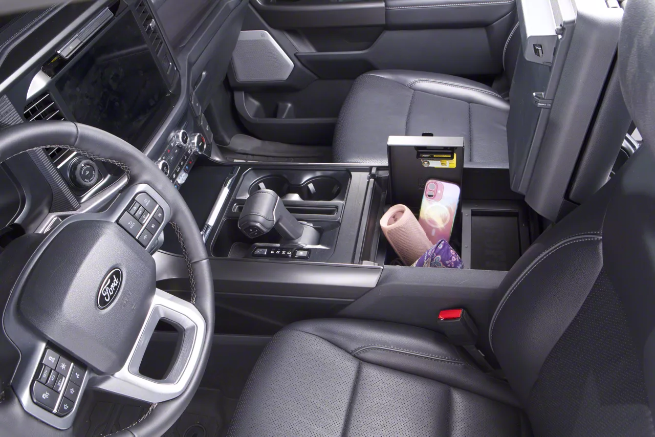 Turn your factory console into real security. This vehicle-specific center console safe for the 2025 Ford F-150 drops directly into the OEM console and locks down what matters—wallets, keys, badges, tablets, and other essentials—without giving up everyday convenience. With exterior dimensions of 11.52" W × 8.9" H × 12.77" L and a spacious 968 cubic-inch interior (11.52" W × 6.59" H × 12.75" L), you get serious, organized room while keeping valuables out of sight and under lock. The low-profile design preserves the clean look of your cabin, rides silent, and opens fast when you need it, making it the smart upgrade for drivers who want more than a flimsy tray or a glove box that anyone can pop. At just 7.2 lb, it’s engineered to be sturdy, tight, and easy to live with—day in, day out.Installation is quick and clean with no drilling, so you keep your truck’s resale value and factory integrity. Choose the lock style that fits your workflow—traditional keyed confidence or fast, key-free combination access—and know that either way you’re getting a purpose-built, F-150 console safe that’s designed to work like it was always meant to be there. If your search terms look anything like “2025 F-150 center console safe,” “Ford F-150 console lockbox,” “no-drill console safe,” or “lockable center console insert,” this is the one that checks every box: OEM-fit convenience, legit storage capacity, and everyday security you can trust—without compromising the look or function of your interior.