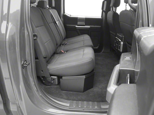 Installation. Designed for easy installation, the lockbox fits directly under the seat of the F-150 SuperCrew without requiring any modifications.