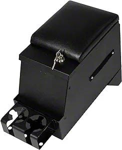 Quality and Comfort. Crafted from premium-quality steel and finished with a textured black powder coat, this console offers durability and style. The marine-grade vinyl padded armrest provides added comfort during long drives, and polypropylene seat belt straps ensure your safety.