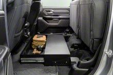 Turn unused space into real security. This full-width underseat drawer is built for the 2019–2025 RAM 1500 Crew Cab, engineered from 16-gauge welded steel and weighing 54 lbs of no-nonsense protection. Measuring 40" L x 13" W x 4.13" H (interior: 36" x 11.35" x 4.42"), it delivers over 1,800 cubic inches of lockable storage without stealing a single inch of cabin comfort. The front-opening design slides smooth and gives you instant access without pulling up your rear seat—fast, quiet, and discreet. Stealthy by design, it disappears under the seat until you need it, keeping valuables out of sight and locked down with a professional-grade system designed to match the truck it rides in.Choose your lock style to fit your lifestyle: the keyed model uses Tuffy’s exclusive 10-tumbler, double-bitted lock with built-in weather seals, while the combo version offers quick code-only access with a 3-digit system. Both deliver serious anti-pry strength with a 1/8-inch thick 3-point locking system and heavy-duty 11-gauge steel mounting brackets. Installation is fast and factory-clean, fastening with OEM hardware and requiring no drilling or permanent mods. Not compatible with RAM Classic or TRX models, this drawer is purpose-built for the RAM 1500 Crew Cab driver who wants real security, smarter organization, and gear protection that works as hard as the truck itself.3-digit combination lock—fast access, no keys requiredStealthy design stays completely hidden under the rear seatHeavy-duty 16-gauge welded steel construction for serious protectionHeavy-duty 11-gauge steel mounting brackets for solid strengthFront-opening drawer design for easy access—no seat lifting requiredOver 1,800 cubic inches of lockable storage capacity1/8-inch thick 3-point locking system resists pry attacksMounting hardware included; fastens with original OEM hardwareQuick, clean installation—no drilling or permanent modificationsFits RAM 1500 Crew Cab (2019–2025 models only)Will NOT fit RAM Classic or TRX models