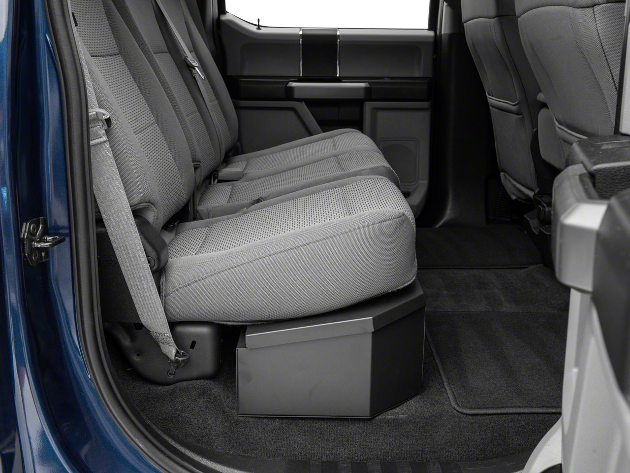 Features for Security and Convenience. The Tuffy Under Rear Seat Lockbox features a pry-resistant pin-lock hinging system that comes with a built-in lid stop for ease of use. This lockbox comes with a 60/40 split door layout that’s braced at the split for strength. This 60/40 split matches how the rear seats are set-up, enabling you to gain access to the box’s contents without having to lift the entire rear seat. Additionally, this box uses three hard-to-pick 10-tumbler locks (one on the smaller and two on the larger door), keeping the lockbox’s contents completely secured. Lastly, this lockbox can be removed in minutes. This feature is quite useful when you have to take your truck in for servicing.
