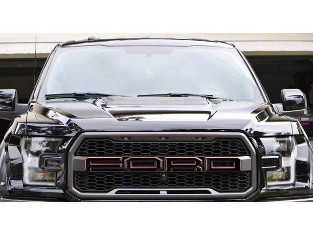 Street Styling. Give your Ford F-150 Raptor stronger street appeal by installing these Front Grille Letter Overlays. These great-looking FORD Letters feature a matte black finish with a red outline pinstripe for aggressive good looks.