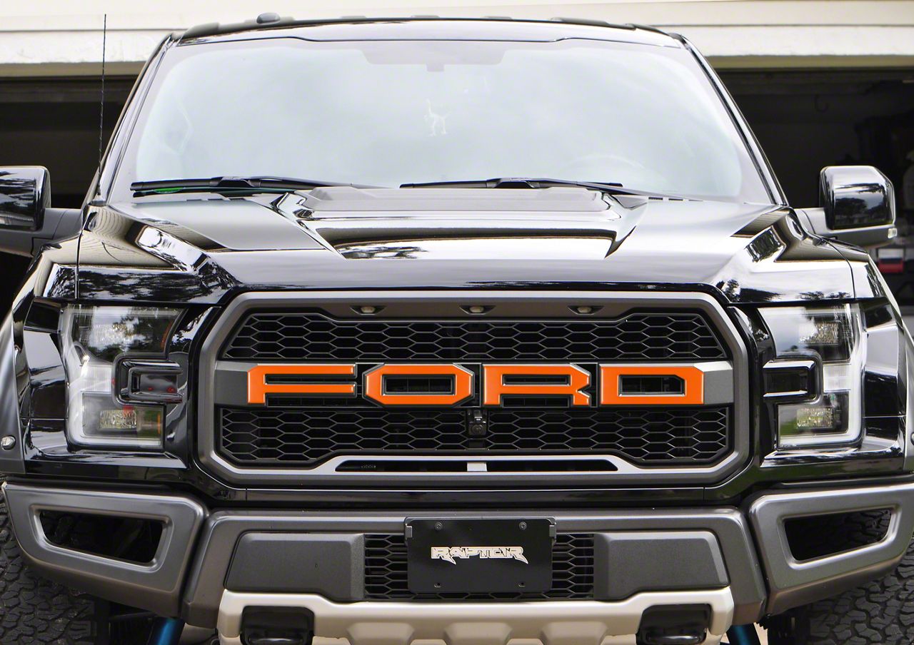 Application. These Tufskinz Front Grille Letter Overlays; Matte Orange fit 2017-2020 F-150 Raptor models.