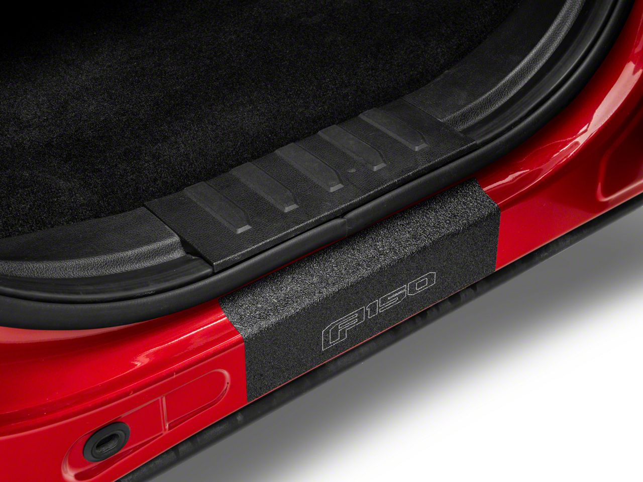 Enhanced Protection with Style. Using these Rear Door Sill Protection with F-150 Logo; TUF-LINER Black; Black and Gray is an excellent way to protect your door entry sill areas. These sill panels not only offer reliable protection from scratches and chips, but also bring a distinctive style to your SuperCrew. Its tough construction, precise fit, and stylish black and gray F-150 logos attractively boost your truck’s appeal.