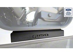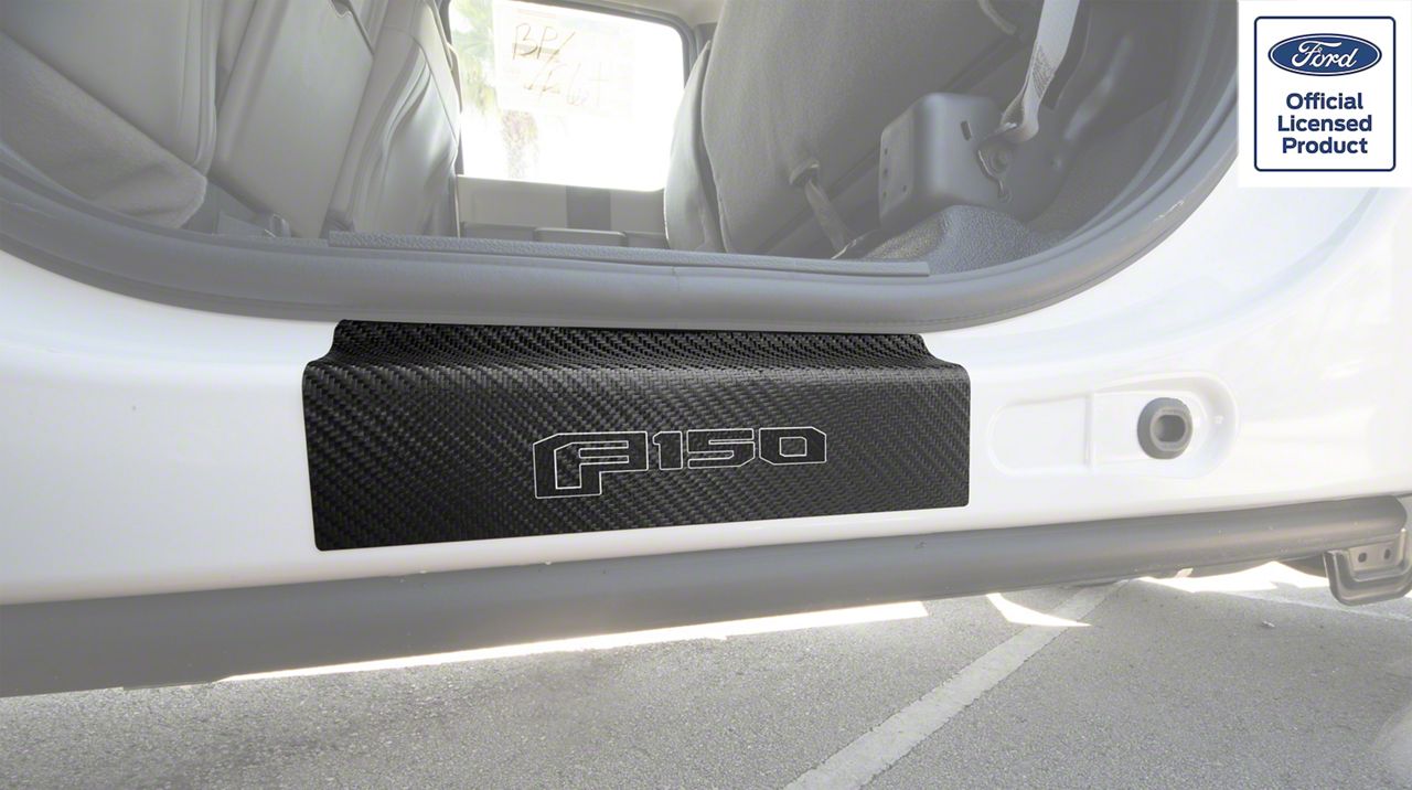 Application. This pair of TufSkinz Raw Real Carbon Fiber Rear Door Sill Protection with Black and Gray F-150 Logo fits all 2015 to 2026 Ford F-150 SuperCrew models.