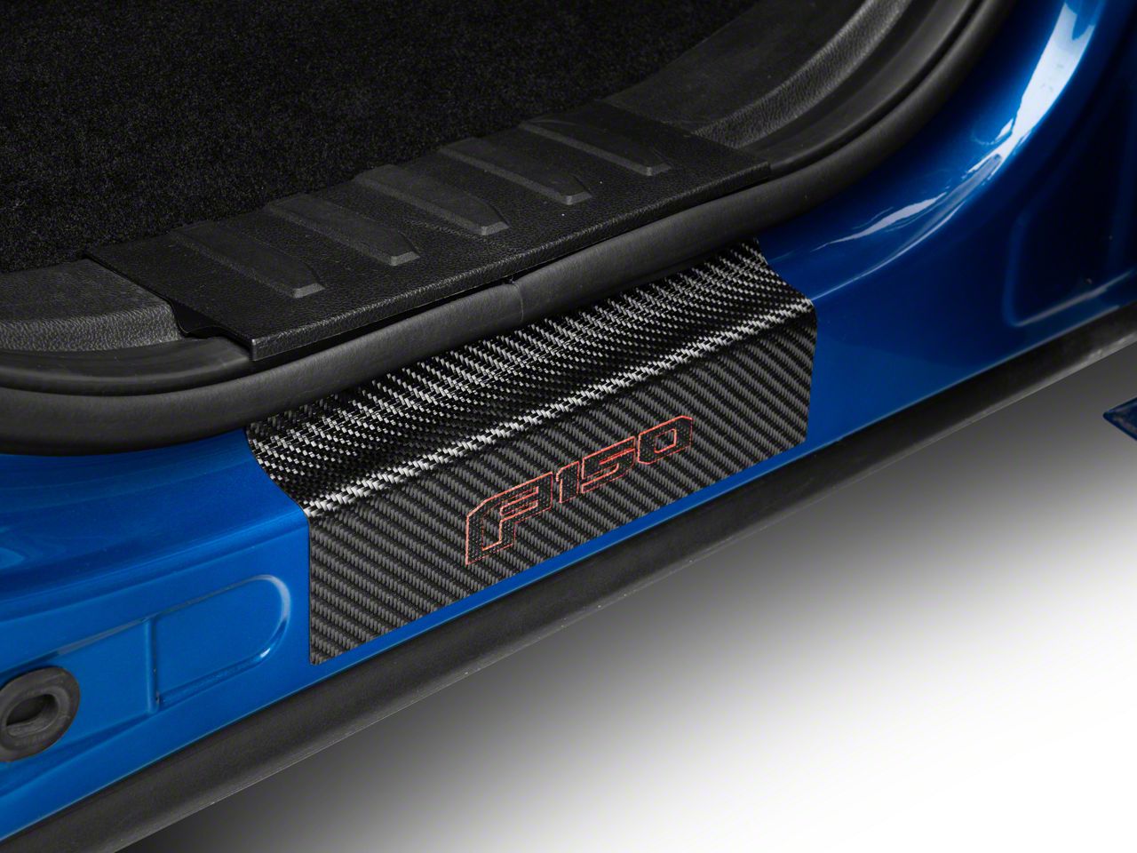 Application. The TufSkinz Raw Real Carbon Fiber Rear Door Sill Protection with Black and Red F-150 Logo fits all 2015 to 2026 Ford F-150 SuperCrew models.