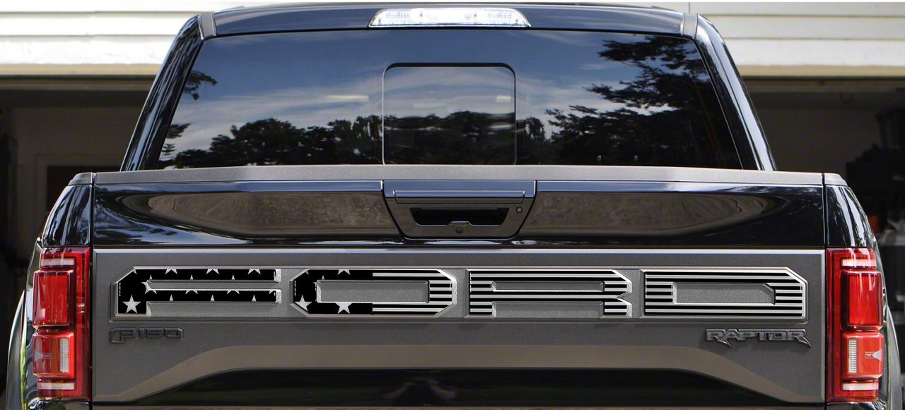 Application. These TufSkinz Black and Silver American Flag Tailgate Overlays fit all 2019-2020 Ford F-150 Raptor models with Tailgate Appliques.