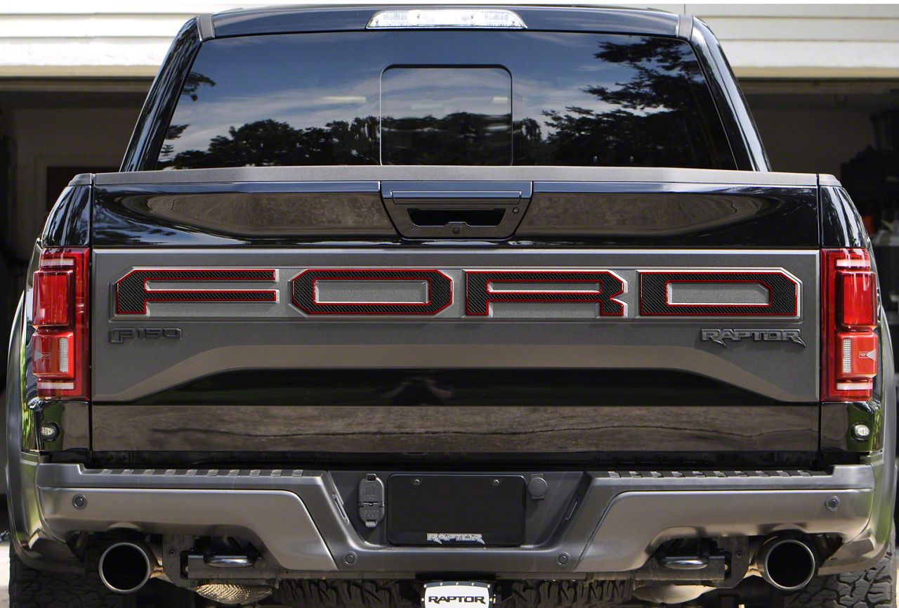 Show Some Pride. These Tufskinz Tailgate Letter Overlays; Domed Carbon Fiber with Red Outline will show the pride you have just in being an F-150 owner. Made to last, and officially licensed by Ford, these letters are a wonderful style upgrade for your truck.