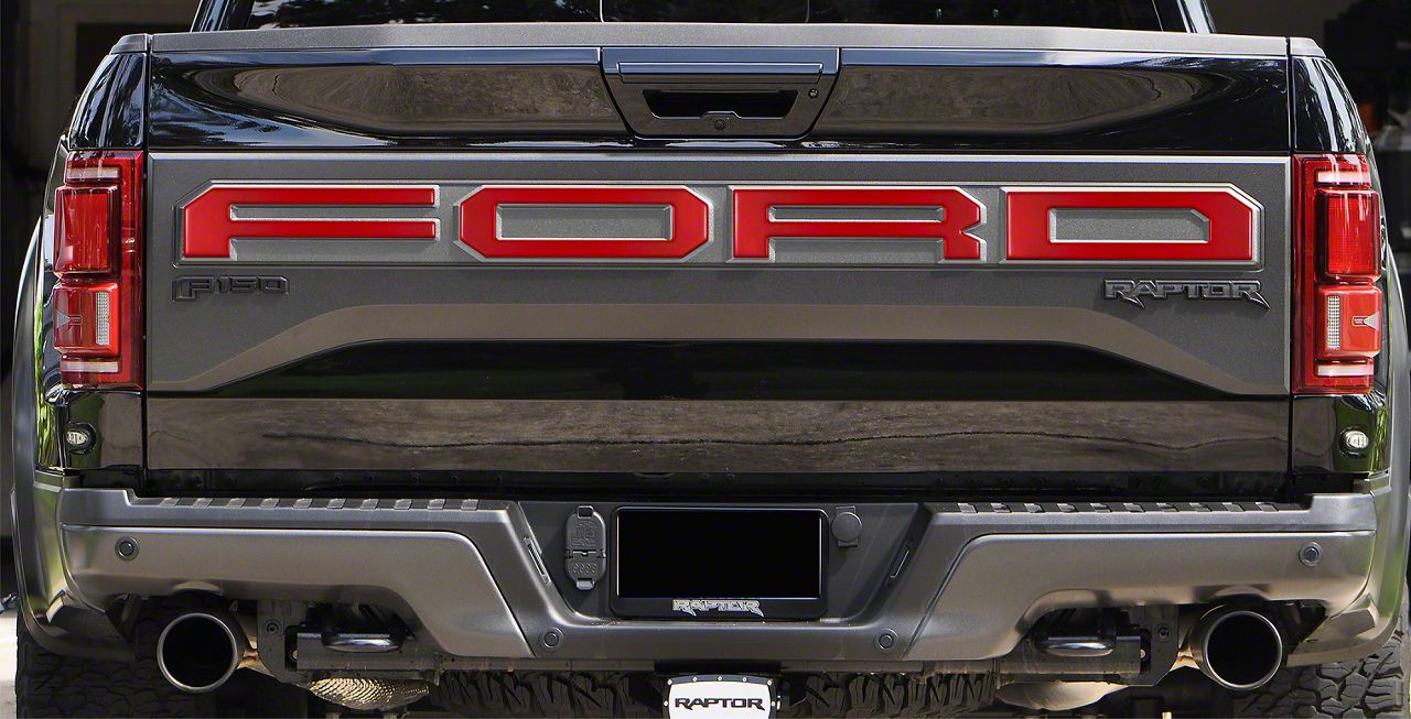 Application. These TufSkinz Matte Red Tailgate Letter Overlays fit all 2019-2020 Ford F-150 Raptor models with Tailgate Appliques.