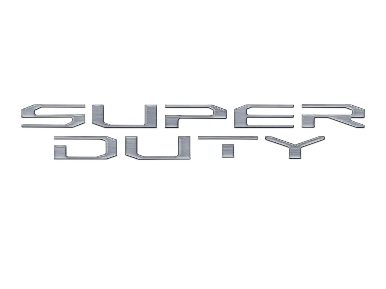 Design. Made in the USA, this 9-piece kit features raised and stylish "Super Duty" letters. Each letter endures a 3-layer process. The first layer creates a high gloss, durable finish. The second layer is a mix of color matches that provides a variety of color options. The third is a 3M auto-grade adhesive. The letters are adorned in brushed silver.