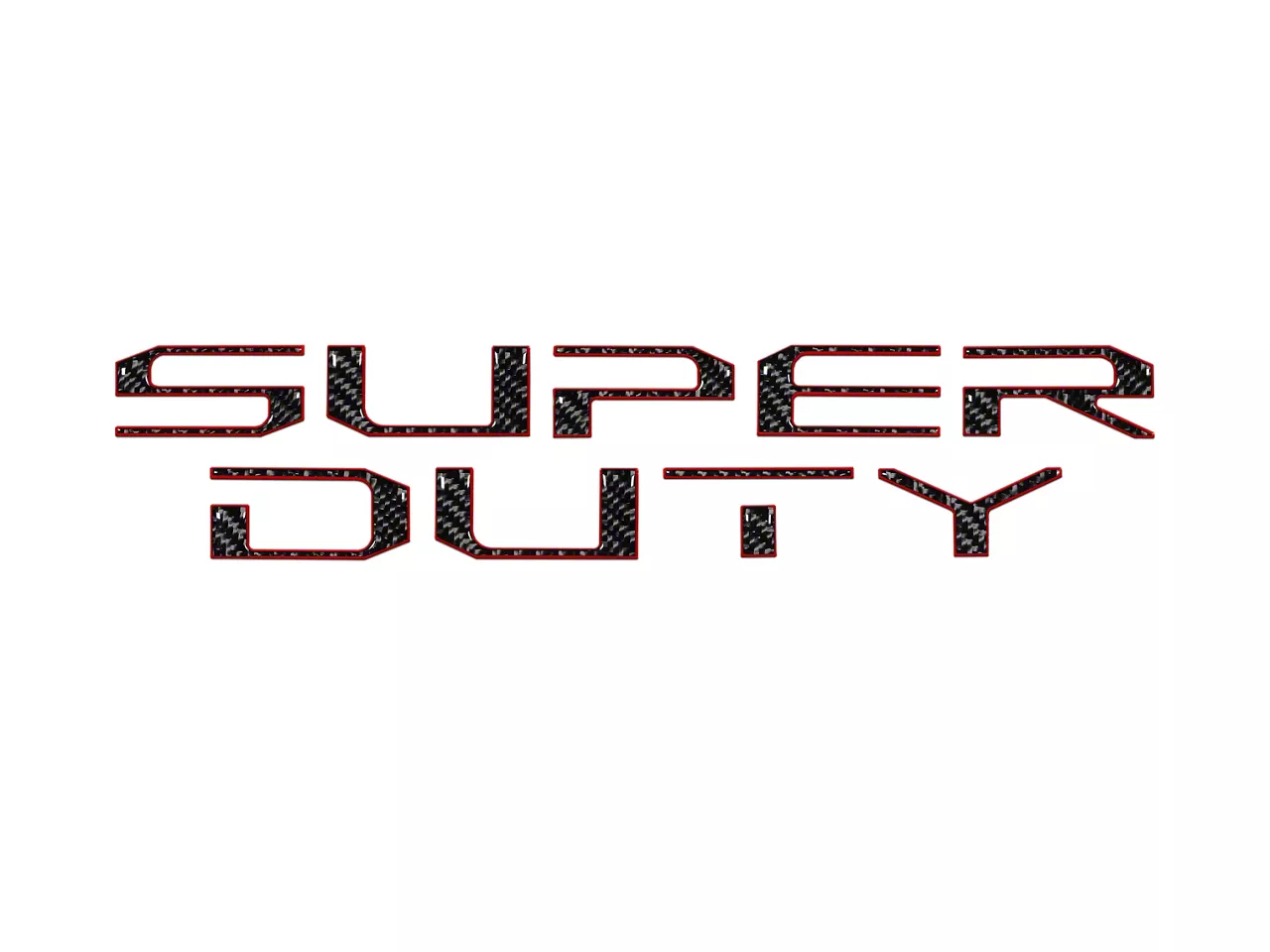 Design. Made in the USA, this 9-piece kit features raised and stylish "Super Duty" letters. Each letter endures a 3-layer process. The first layer creates a high gloss, durable finish. The second layer is a mix of color matches that provides a variety of color options. The third is a 3M auto-grade adhesive. The letters are adorned in domed carbon fiber with a red outline.