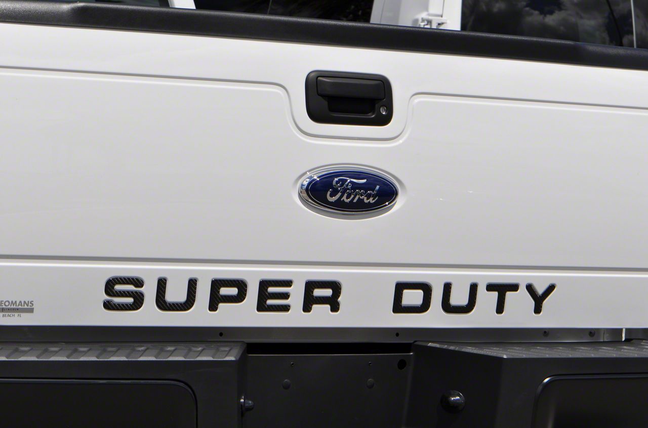 Show Some Pride. These Tufskinz Tailgate Insert Letters; Domed Carbon Fiber will show the pride you have not just in being a Super Duty owner, but in the United States of America. Made to last, and officially licensed by Ford, these letters are a wonderful style upgrade for your truck.