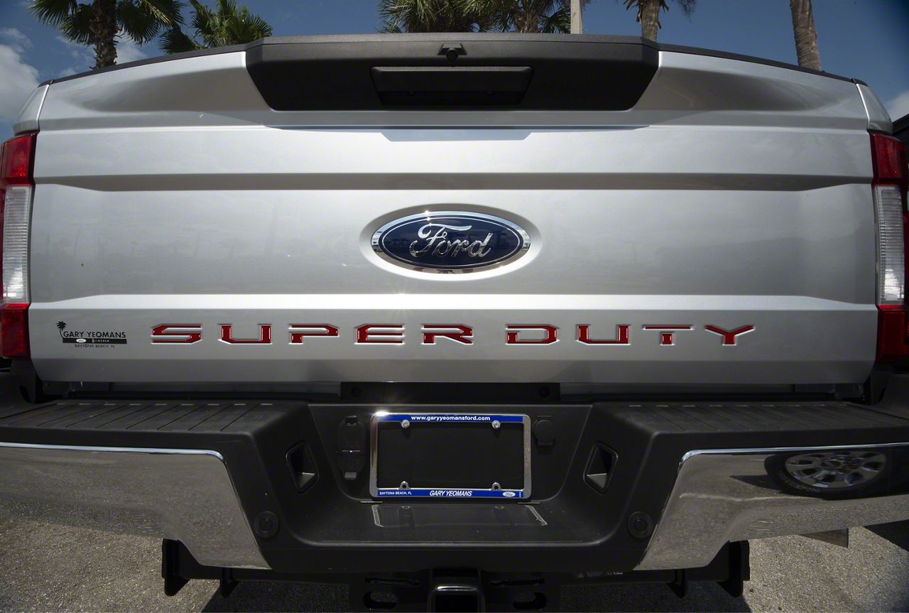 Application. These Tufskinz Tailgate Insert Letters; Ruby Red fit 2017-2019 F-250 Super Duty models.