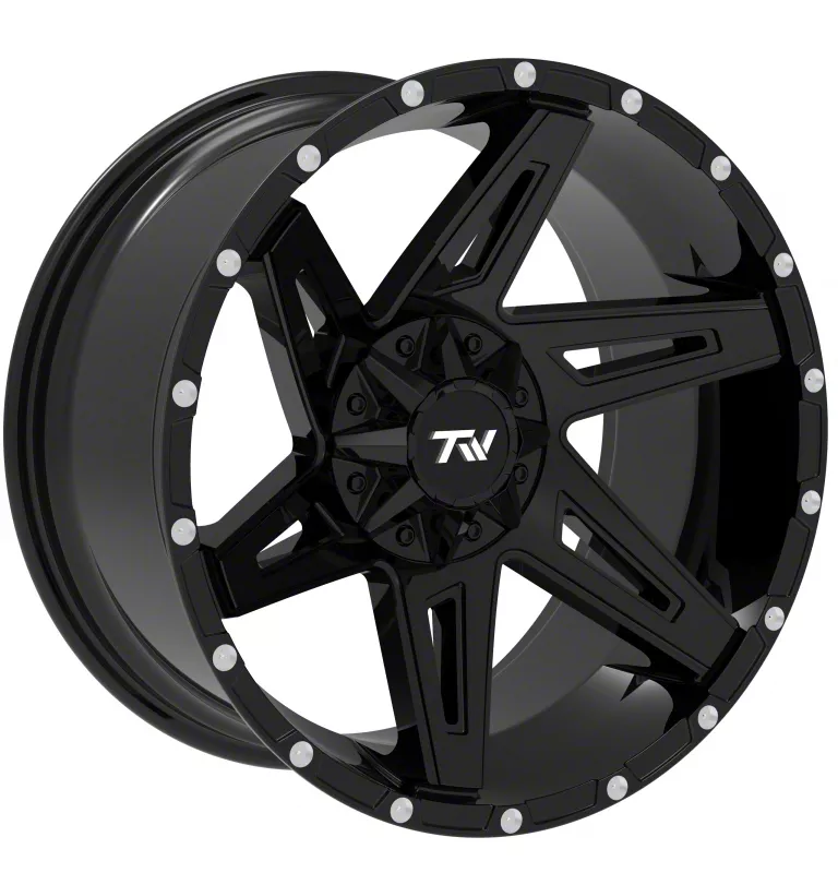 The 20x10 TW Offroad T4 Spin Gloss Black 6-Lug Wheel is completed in a high-quality gloss black finish. For added protection and good looks, this Wheel features a durable, matte clear coat that is tough enough to stand up against the hazards of everyday driving.