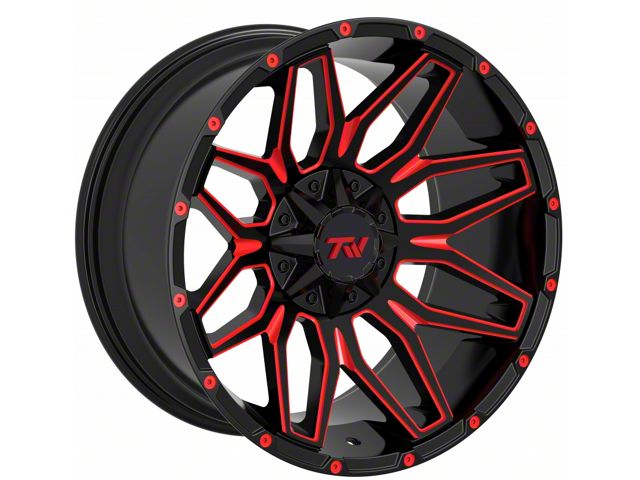 TW Offroad T3 Lotus Gloss Black with Red 6-Lug Wheel; 20x9; 0mm Offset This wheel offers a sleek and modern design that enhances the visual appeal of your vehicle. Its metallic gunmetal finish adds a touch of elegance and sophistication, making it a perfect fit for those who want to make a bold statement on the road.