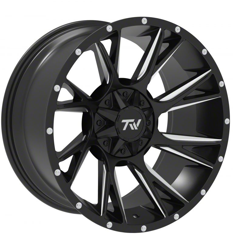The 20x10 TW Offroad T12 Blade Gloss Black with Milled Spokes 6-Lug Wheel is completed in a high-quality gloss black finish with steel milled accents. For added protection and good looks, this Wheel features a durable, matte clear coat that is tough enough to stand up against the hazards of everyday driving.
