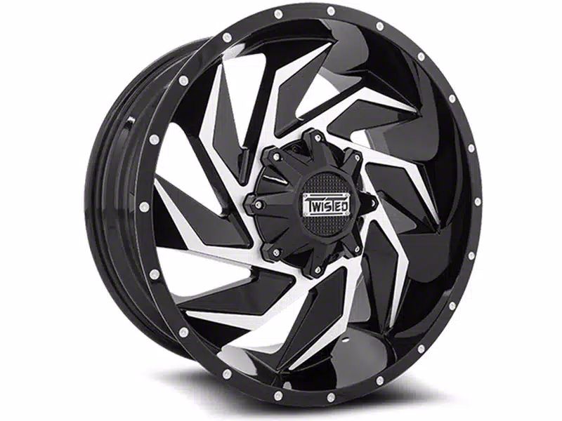 This 22x12 Twisted Off-Road T-27 Vixon Gloss Black Machined 8-Lug Wheel is completed in a high-quality gloss black finish with machined accents to create an impressive appearance. There's a durable clear coat that protects against driving hazards.