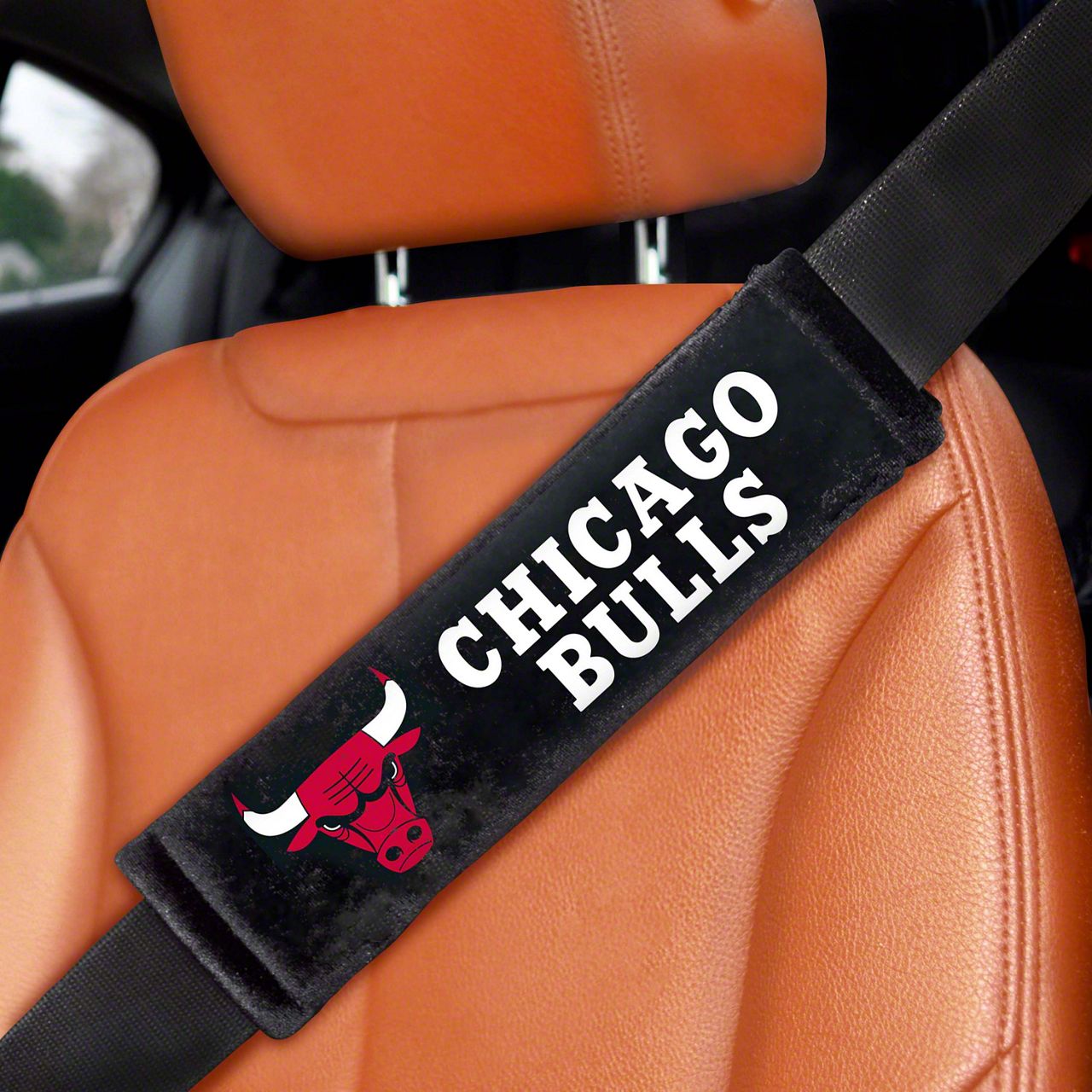 Embroidered Seatbelt Pads with Chicago Bulls Logo; Black (Universal; Some Adaptation May Be Required)