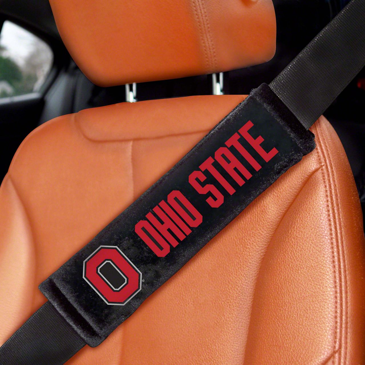 Embroidered Seatbelt Pads with Ohio State Logo; Black (Universal; Some Adaptation May Be Required)