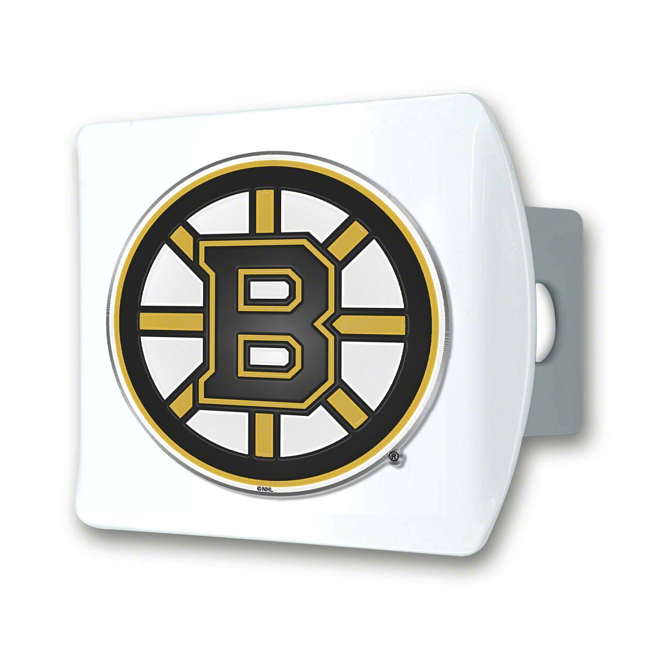 Hitch Cover with Boston Bruins Logo; White (Universal; Some Adaptation May Be Required)