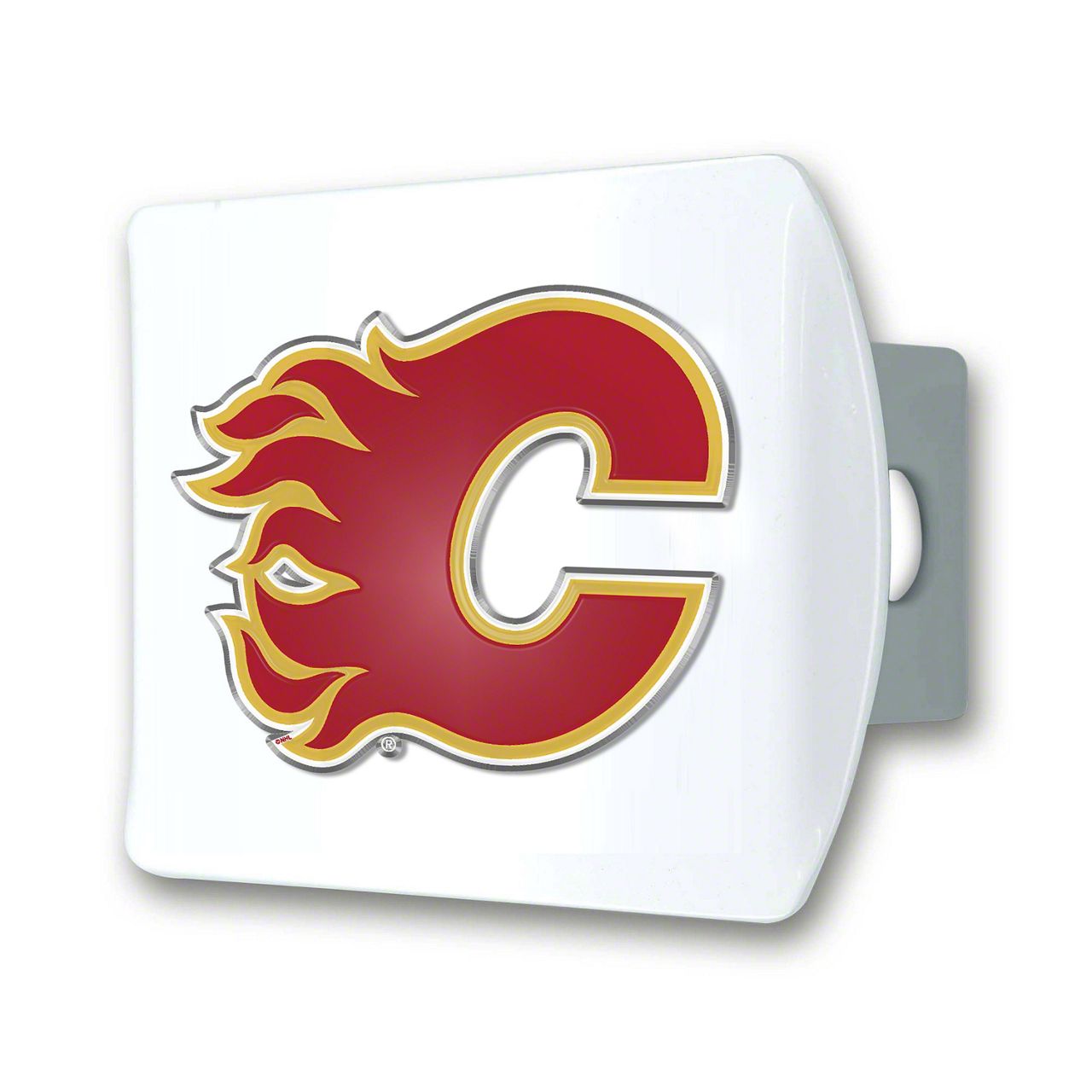 Hitch Cover with Calgary Flames Logo; White (Universal; Some Adaptation May Be Required)
