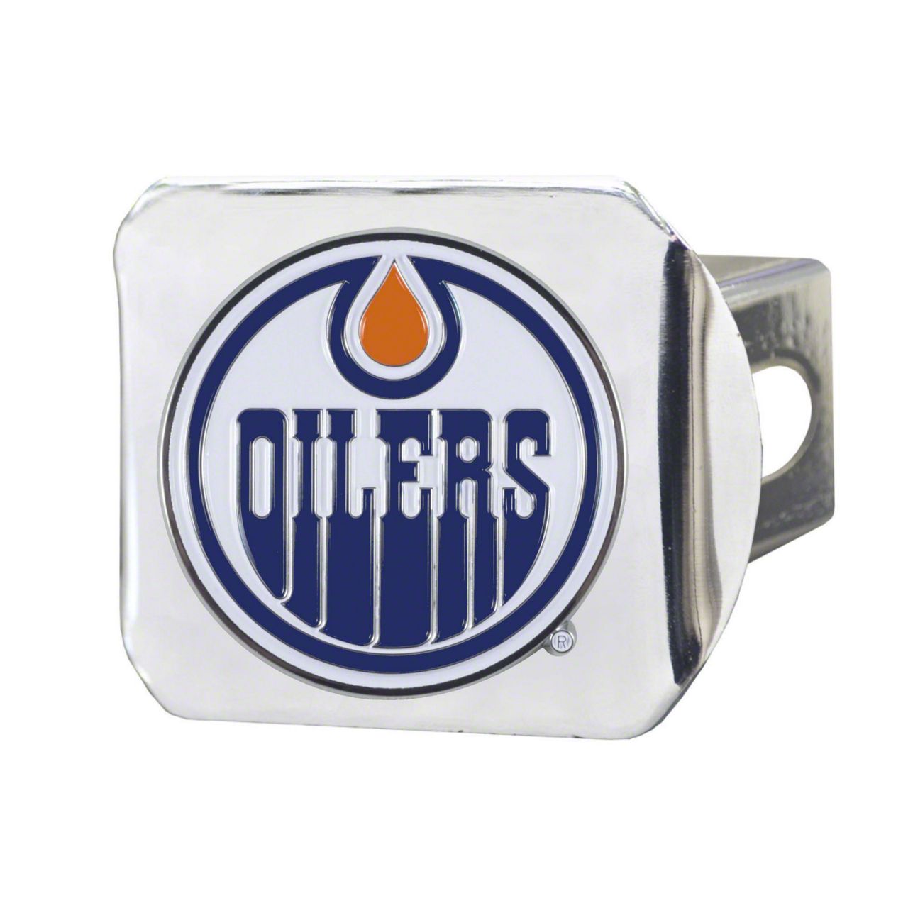 Hitch Cover with Edmonton Oilers Logo; Chrome (Universal; Some Adaptation May Be Required)